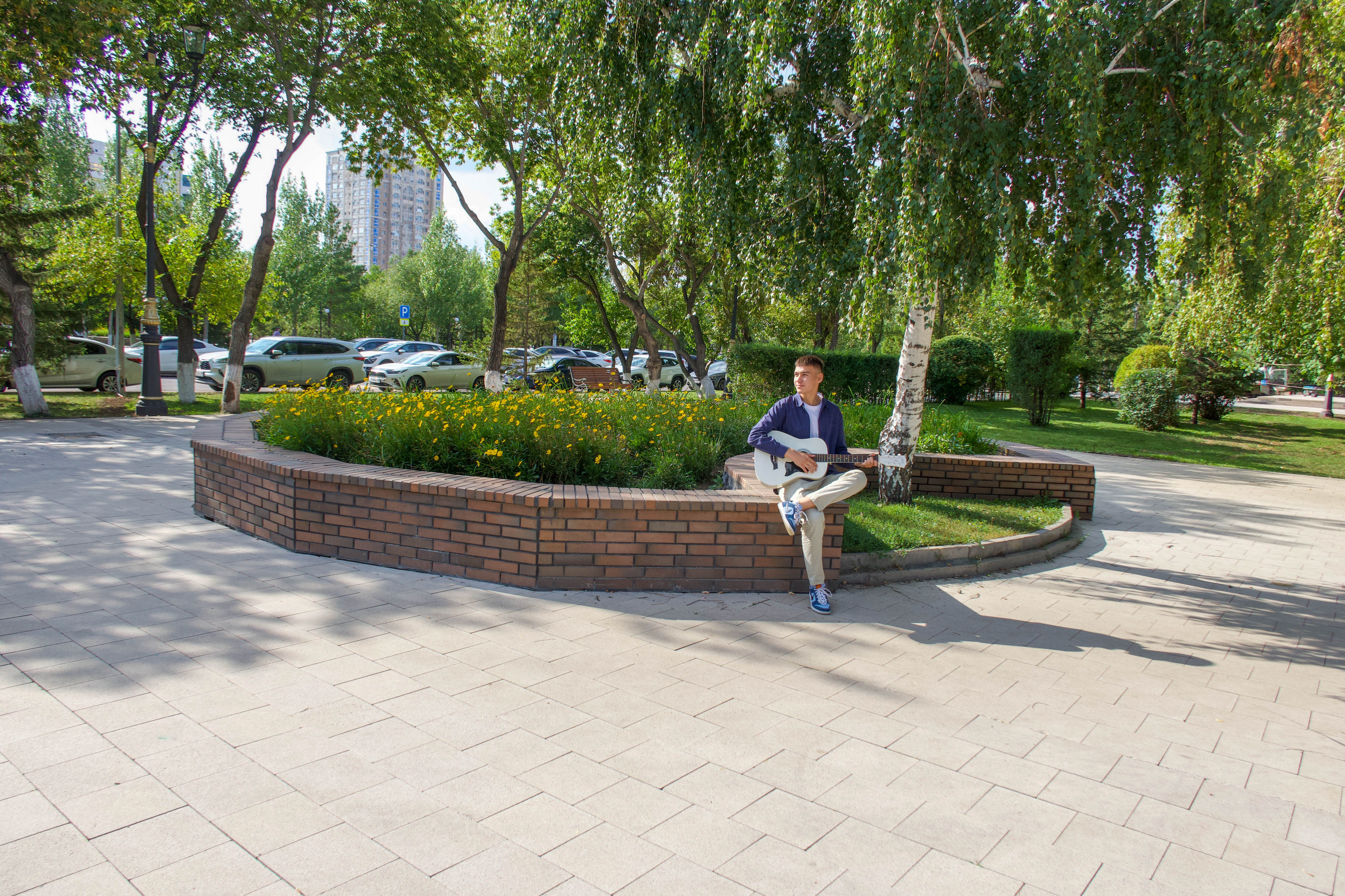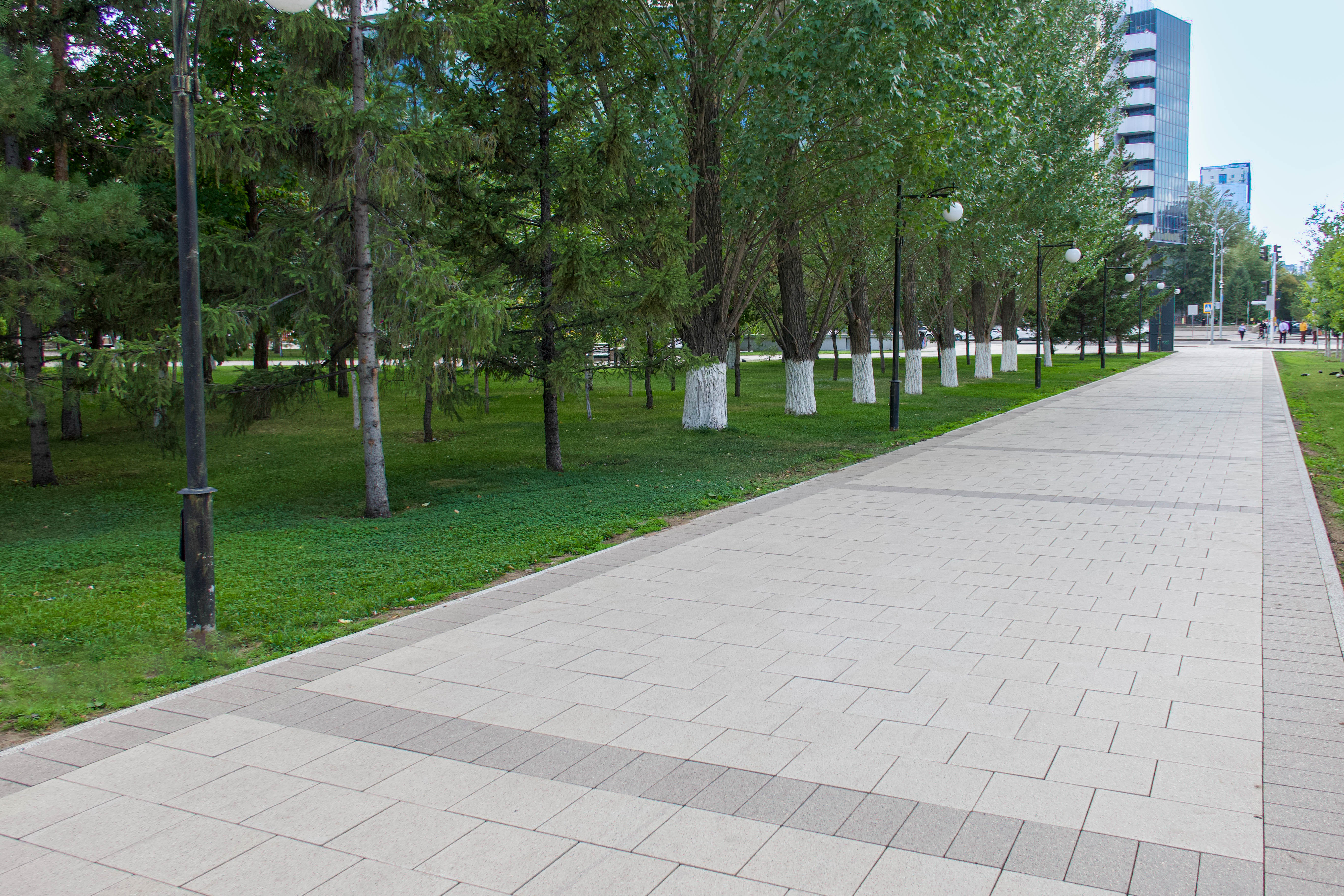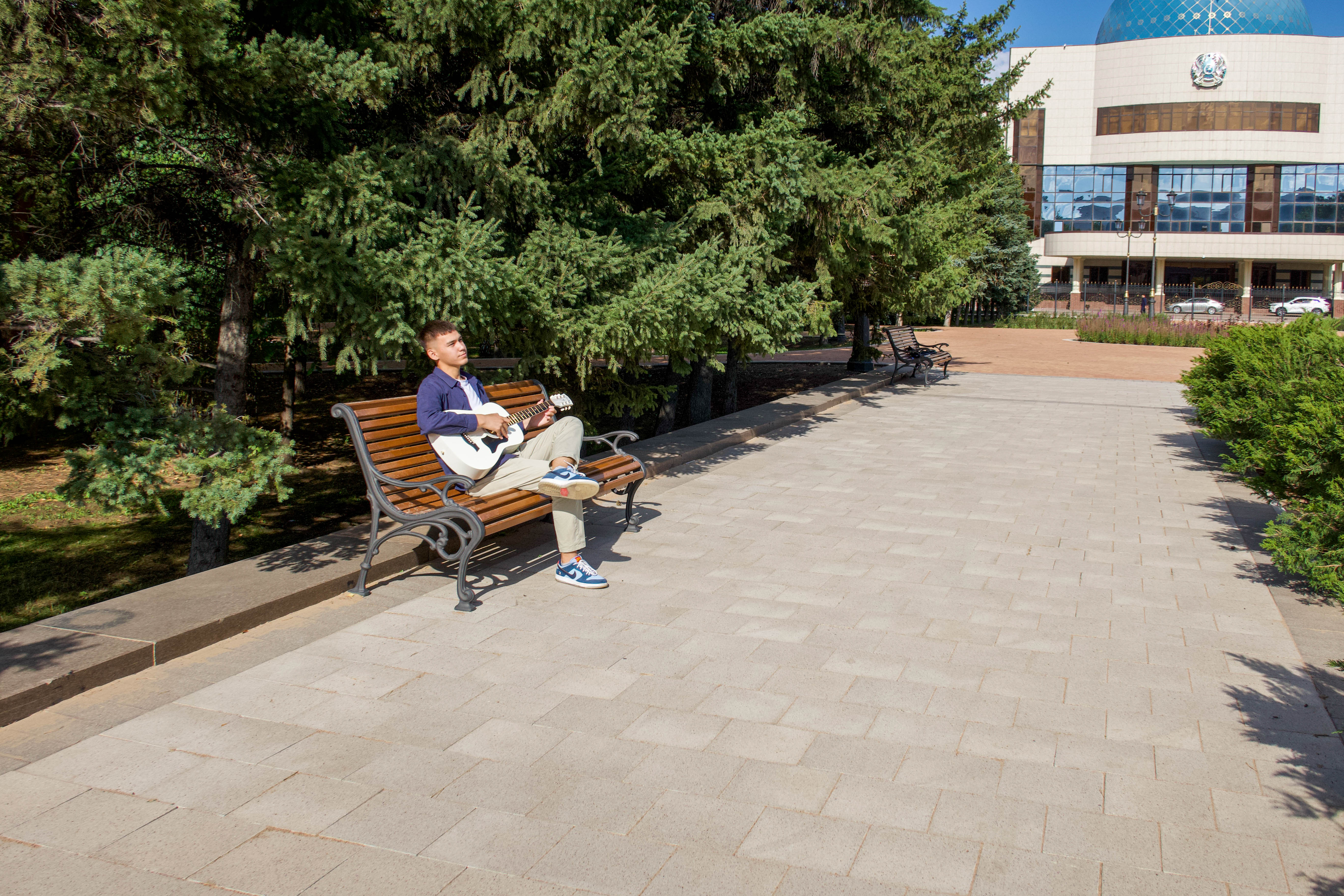 Тротуарное покрытие пространства заменили на камни Saryarka Gold — тёплый оттенок придаёт месту особую атмосферу уюта и гармонии. Теперь сквер выглядит современно и располагает к спокойным прогулкам.