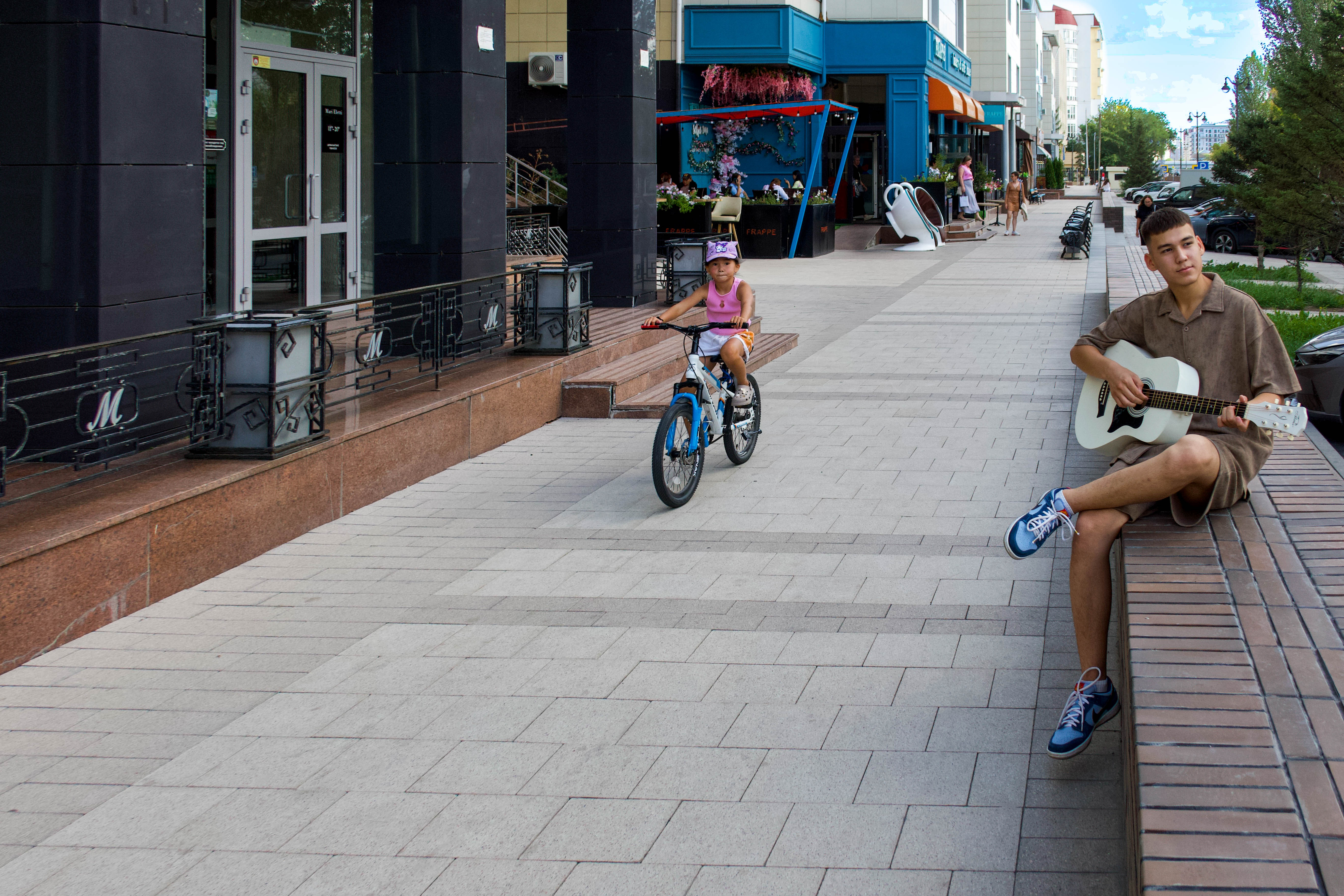В основе проекта — тротуарные плиты Saryarka Gold, которые задали пространству современный и цельный облик. Единый стиль района. Единый стиль города. Уверенный курс на комфорт, уют и красоту столицы.